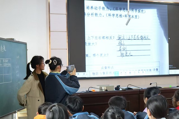 本网讯 11月25-26日,平口镇中学物理教师李征参加安化县2024年初中物理教学比武,她所执教的《生活中的透镜》荣获县级一等奖。 该堂课,她为了更好地辅助教学,自制了一系列课堂教具,将书本上的理论知识以直观、形象的方式呈现出来。她通过带领学生分析照相机的结构,用自制照相机激发了学生的学习兴趣,让学生自主进行投影仪的实验探究,并用自制投影仪为学生答疑解惑,在实验过程中,老师始终扮演着引导者和辅助者的角色,充分将课堂的主导权交给了学生。此种教学方式既让学生在轻松愉快的氛围中掌握了知识,又取得了显著的教学效果。该堂课为大家展示了一个优秀的教育者应有的素质和风范,她用自己的智慧和热情,点燃了学生对物理的热爱。 据悉,该校为培养青年教师快速成长,致力于青蓝结对工程与集体备课,重视学科团队教研。相信在这样的教育环境下,该校师生一定会走得更远,飞得更高。 初审初校:夏明兰