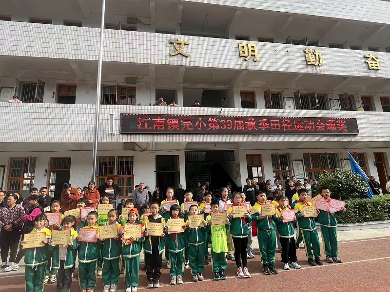 本网讯 11月8日,江南镇完小第39届田径运动会在激情与欢乐中圆满落下帷幕。此次运动会历时4天,全校师生共同参与,展现出了一场精彩纷呈、充满活力的体育盛宴。 在闭幕式现场,气氛热烈而庄重。伴随着激昂的运动员进行曲,各班运动员迈着整齐有力的步伐有序入场,他们脸上洋溢着自豪和喜悦,尽管在赛场上挥洒了汗水,但此刻留下的只有胜利的笑容和对运动的热爱。 副校长王立祥高度赞扬了运动员们在赛场上的优秀表现,对所有参与运动会的师生表示衷心的感谢。他指出,这次运动会不仅是对同学们身体素质和体育技能的一次检验,更是展现了江南镇完小师生团结协作、积极向上、勇于拼搏的精神风貌。希望同学们能将这种体育精神融入到日常的学习和生活中,在今后的人生道路上不断追求卓越。 随后,学校领导为在本次运动会中取得优异成绩的班级和个人颁发了奖杯、奖状和奖品。每一个奖项都凝聚着运动员们的辛勤努力和团队的协作精神,当他们登上领奖台的那一刻,台下响起了热烈的掌声和欢呼声,这是对他们最好的肯定和鼓励。 初审初校:金鑫 复审复校:王立祥 终审终校:姚志军