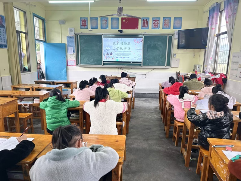 本网讯 10月22日,烟溪镇陈竹小学举办“执笔书经典 古韵逸书香”硬笔书法比赛。 比赛自启动以来,便吸引了全校同学的积极参与。经过班级初选,共有来自全校各个年级的20名学生脱颖而出,晋级校级决赛。在决赛现场,小选手们个个精神饱满,手持圆珠笔或铅笔,聚精会神地在纸上挥毫泼墨,一笔一划间展现出他们对书法的热爱和追求。 比赛过程中,评委老师们对每位选手的作品进行了认真细致的评审。他们从字的结构、笔画、布局等多个方面进行综合考量,力求公正、公平地评选出优秀作品。经过紧张而有序的评选,最终评出了一等奖4名、二等奖4名、三等奖4名以及优秀奖若干名。 学校负责人表示,此次硬笔书法比赛的成功举办,不仅丰富了校园文化生活,也为同学们提供了一个锻炼自我、展示才华的舞台。通过比赛,同学们不仅提高了自己的书法水平,更深刻体会到了中华文化的博大精深和独特魅力!