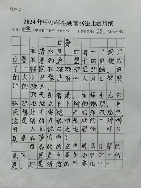 本网讯 10月14日,南金乡将军完小举行了一场墨香四溢的硬笔书法比赛活动,全校师生共同参与。 活动前,老师们积极商讨比赛内容,确定比赛场地,确保每位小选手都能有一个舒适、安静的创作环境。 活动中,学生们手握硬笔,专注地在纸上书写,用一笔一划表达对书法的热爱,有的字迹工整,有的洒脱奔放,有的笔锋独特,呈现出一篇篇独具个人风采的作品。 此次活动不仅为我校师生提供了一个展示自我、锻炼能力的平台,还让他们体会到了中华传统文化的魅力。该校负责人表示,今后会继续举办类似活动,积极培养学生的审美情趣和艺术修养。 初审初校:冉茂兰 复审复校:庞晓晓 终审中校:谌少准