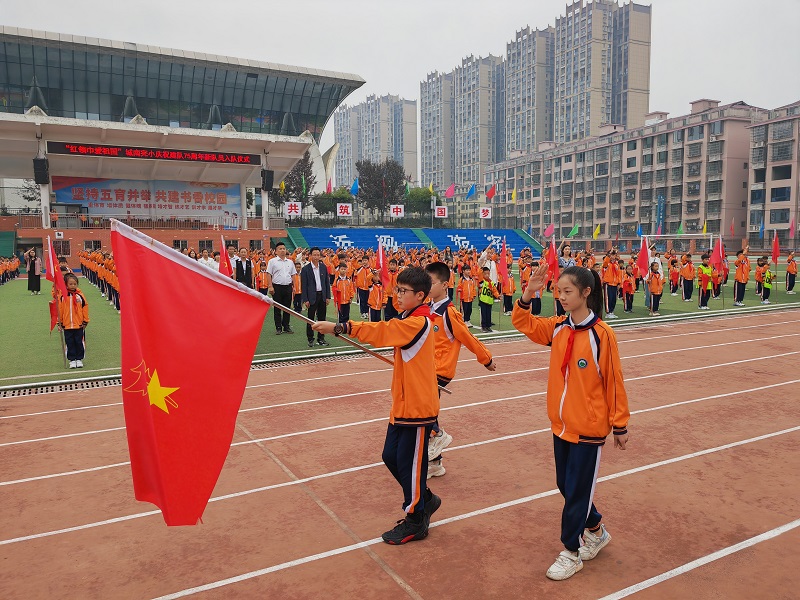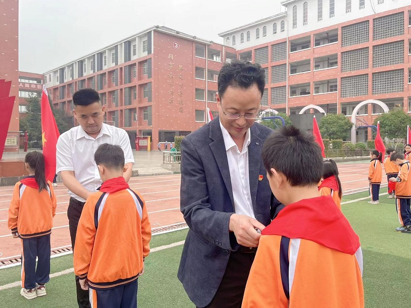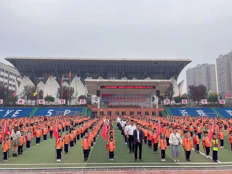 本网讯 “我们是共产主义接班人,继承革命先辈的光荣传统……”10 月 12 日上午,东坪镇城南完小少先队大队部举行了主题为“红领巾爱祖国”庆祝建队75周年入队仪式,416名优秀学生光荣加入中国少年先锋队,该校全体党员共同见证了这一重要时刻。 伴随着激昂雄壮的少先队出旗曲,新队员入队仪式正式拉开帷幕。全体少先队员齐声高唱《中国少年先锋队队歌》,大队委宣布新队员名单,该校党员和老队员代表为新队员佩戴红领巾,新队员们在队旗下庄严宣誓,这一刻,活动气氛被推向高潮。新队员代表用稚嫩而坚定的声音发言,党支部书记张密田发表致辞,向新入队的少先队员们提出明确具体的要求,让少先队员们明确和坚定了自己的历史使命。入队仪式在全体少先队员嘹亮的呼号声中圆满结束。 学校相关负责人表示,此次入队仪式庄重且充满意义。它不仅是一个仪式,更是对少先队员们进行爱国主义、团队精神和责任意识培养的良好契机,相信会在孩子们的成长中留下深刻印记。 初审初校:蔡丽旭 复审复校:封卫华 终审终校:张密田