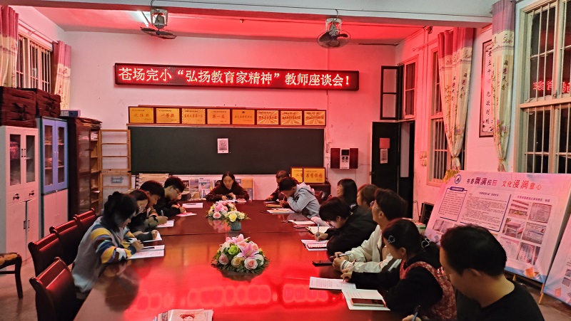 本网讯 10月7日晚,马路镇苍场完小举行“弘扬教育家精神”座谈会,全校16名教职工参加了本次学习活动。 座谈会上,全体参会教师发言,或畅谈从教故事,或叙说师生美丽记忆,或抒怀自己从教的感受。山乡从教34年的邓迪华回忆了和学生生活的点点滴滴,生日学生互喂蛋糕的温馨,爬山和孩子们相互激励的美丽瞬间。中年教师邓金连深情感叹教师最大的幸福,就是每逢放假,现读初中高中的孩子到学校来向自己述说新学校的见闻,聊生活中的快乐与烦恼。新教师邓陶海讲述了自己从教初中、小学的不同感触,他说,初中的孩子有了自己理性的思维,而小学孩子把老师当做学习顶礼膜拜的神一样,因此,要用自己的爱心,全力呵护孩子们幼小的心灵,引导他们在阳光下成长。 该校负责人在总结时说:弘扬教育家精神,就是要做塑造学生品格、品行、品味的大先生。在教学生涯中心有大我,行为师范,启智润心,乐教爱生,因材施教、以文化人就是教育家精神的最美体现。