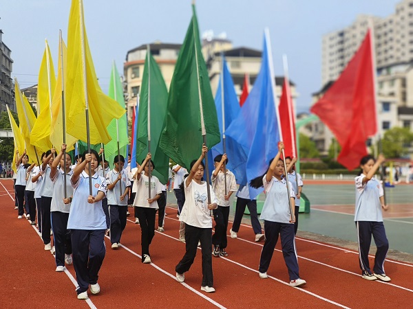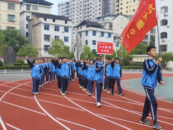 本网讯 9月27日,平口镇中学第二十届秋季田径运动会顺利开幕,校园彩旗飘飘,乐曲声声,处处充满生机和力量。 早上8:30分,《运动员进行曲》响起,开幕式即拉开了帷幕。学校各班级代表队在国旗队、校旗队、彩旗队的引领下,迈着整齐的步伐,精神抖擞、英姿飒爽地步入会场,整齐划一的队形,充分展现了学生斗志昂扬的精神。入场仪式结束后,班级代表队进行精彩的才艺展示,将舞蹈、武术、合唱等节目搬上舞台,将现场氛围推向高潮。 开幕式中,学校艺体负责人夏明兰致开幕辞,裁判员代表黄诗老师、运动员代表2201班邓景轩逐一宣誓,纷纷用简短有力的誓言表明了自己的决心。最后,校长伍文才宣布平口镇中学第二十届秋季田径运动会开幕。开幕式在阵阵欢呼声中落下帷幕,紧张激烈的比赛才刚刚开始。 据悉,本次运动会为期3天,田径赛项目多达12个,该校运动会组委会精心部署,教师各司其职,配合默契。学校负责人表示,将以此次运动会为契机,做好县运会体育人才的选拔,落实立德树人根本任务,深入推进“五育并举”。 初审初校:夏明兰 复审复校:夏晓新 终审终校:伍文才
