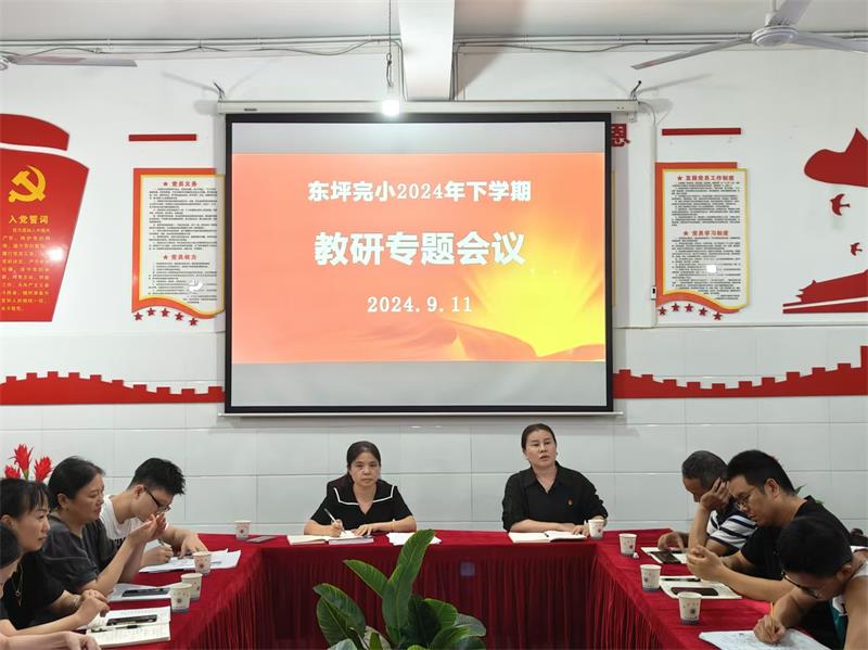 本网讯 9月11日,东坪完小2024年下学期教研工作专题会议在该校党建室召开,全体行政和教研组长共同参加。会议由该校教科室主任陈加革主持。 会上,陈加革总结了上学期教研组工作情况,宣布优秀教研组名单,并作了《凝聚智慧,深耕教研》专题报告。优秀教研组组长李萍进行经验分享。副校长陶英勇就本学期书香校园建设工作进行了部署安排。教务主任蒋丽光通报了开学初教师教学计划检查情况,针对教师教学常规工作作进一步强调。分管教学工作的副校长林中爽强调了本学期教研工作重点,并进行了专题讲座《同研共享,蓄能新学期》。 该校校长陈秀丽对全体成员提出了新的要求和展望:做好上级精神、学校政策的传达者;做好教研教学工作的优秀者;创新工作业绩、彰显东风实力。 初审初校:陈加革