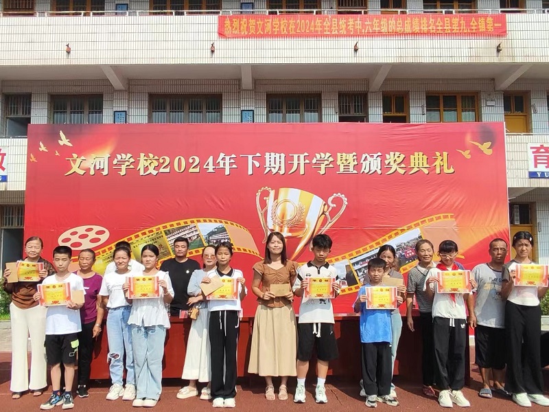 本网讯 9月10日,大福镇文河学校举行2024年新学期开学暨颁奖典礼。全体师生齐聚学校操场,大福镇中心校领导班子及福欣村、沂兴村、民利村、天罩山村村民代表受邀参加典礼,大福镇人民政府人大主席丁翔出席典礼,本次典礼由校长虎贲主持。 典礼上,虎贲致欢迎词,向到场的嘉宾表示欢迎,他强调,学习是学生的天职,希望大家能够珍惜时光,扎实掌握各门学科知识,为将来的人生奠定坚实的基础。接着,丁翔发表了重要讲话,强调教育的重要性,他高度赞扬文河学校取得的成绩,并寄予新学期的期望。随后,典礼进入颁奖仪式;教导主任万苾雯表彰上学期在各方面表现突出的优秀学生和教师。此外,虎贲代表学校向积极奉献的福欣村、沂兴村、民利村、天罩山村村委及个人献上锦旗,表示真挚的感谢。 典礼结束后,该校师生纷纷表示将以更加饱满的热情和信心投入到新学期的学习和工作中,共同书写大福镇文河学校更加辉煌灿烂的篇章。