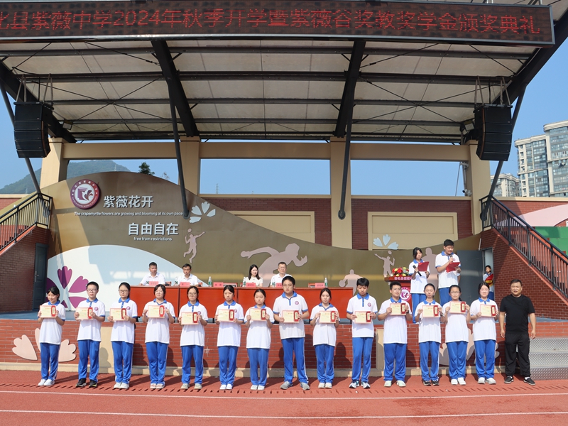 本网讯 9月9日,安化县紫薇中学举行2024年秋季开学暨紫薇谷奖教奖学金颁奖典礼暨举办“庆祝第40个教师节”献礼活动。多凌公司经理谌好玲、安化县慈善总会主任肖晟出席此次活动。 在同学们深情的朗诵中,活动正式拉开帷幕。首先,一场温馨而庄重的教师节献花仪式上演,学生们手捧鲜花,向辛勤耕耘的教师们表达最诚挚的敬意与祝福,现场掌声雷动,温暖人心。 随后,党支部书记、校长黄剑寄语全体师生:“在新的学期里,让我们携手并进,以更加饱满的热情和坚定的信念,共同书写紫薇中学更加辉煌的篇章。”新教师代表戴波则以满腔的热情和坚定的决心,表达了对教育事业的热爱与承诺。七年级新生代表陈梓嫣表达了对知识的渴望和对未来的憧憬,承诺将不负韶华,努力学习,为学校争光。 教学副校长李毅辉宣读了紫薇谷奖教奖学金表彰名单并颁奖。获奖学生们面带微笑,手捧证书与奖学金,荣耀与喜悦之情溢于言表,激励着全校师生追求卓越,不断前行。 初审初校:胡 双 复审复校:李华集 终审终校:黄 剑