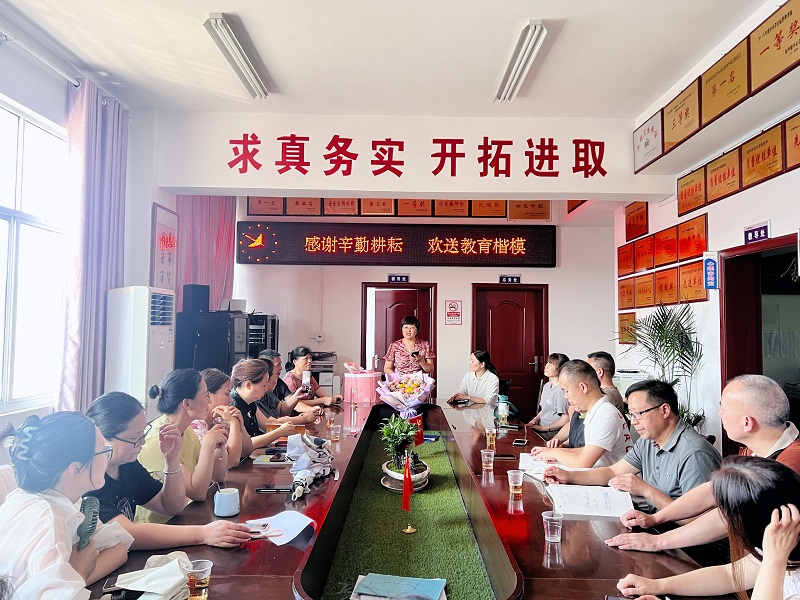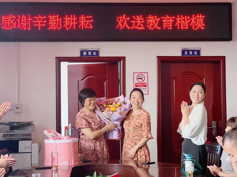 本网讯 7月7日上午,东坪镇泥埠桥完小为即将光荣退休的蒋秋香老师举行了一场温馨而庄重的欢送会。 校长林美花回顾了蒋老师多年来孜孜不倦、兢兢业业的工作历程,每一个细节都充满了对教育的热爱与执着,她诚挚地祝福蒋老师退休后生活美满、幸福安康,并深情地邀请她常回“家”看看,继续与这个大家庭共享教育的喜悦与成果。 随后,搭档老师马爱南代表学校为蒋老师送上了一个大大的拥抱和一束鲜花,现场所有的老师们纷纷真诚地讲述了与蒋老师共事的真切感受。他们的每一个故事都让人动容,大家不禁热泪盈眶。 “莫道桑榆晚,为霞尚满天。”虽然蒋秋香离开了工作岗位,但她的精神将永远照耀着泥埠桥完小的每一个角落,她几十年如一日的无私奉献不仅培养了一批批栋梁之才,更激励着青年教师的成长与进步。愿蒋秋香老师在未来的日子里能够享受生活的美好与宁静。