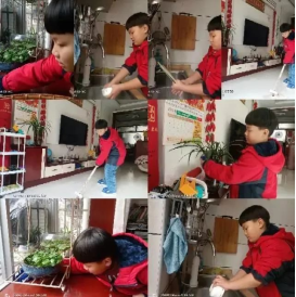 居家动手,培养劳动兴趣。除了完成每天的学习任务之外,学校德育处还要求各年级根据年龄特点布置力所能及的劳动任务,要主动帮助家里承担相应的家务活,如:洗鞋子、袜子、洗碗、收拾桌子、切水果等。不仅美化了家庭环境,还锻炼了身体,对学习也起到了很好的促进作用,劳动虽小,却极大的减轻了父母的负担,自己也享受到了劳动的成果和喜悦。
