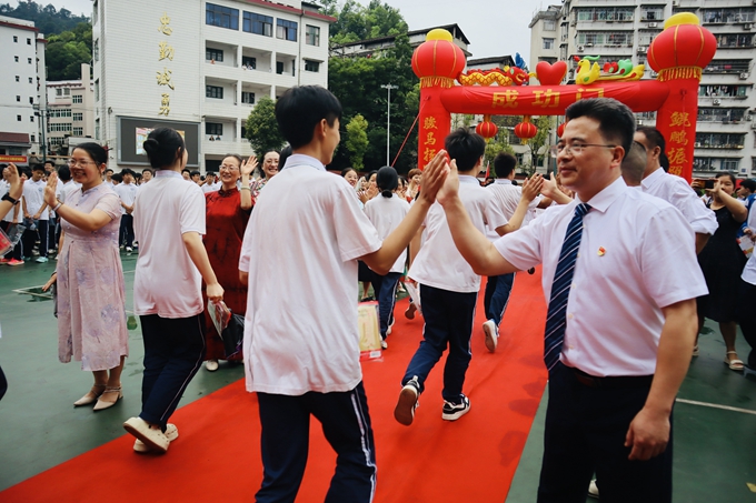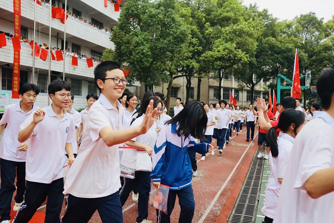 刘巩元击响出征战鼓,将本次活动推向高潮!九年级学子在战鼓声中依次穿过成功门,老师们与学子们击掌鼓劲,为每一名考生加油助威!出征仪式在一片欢乐和祝福中圆满结束。