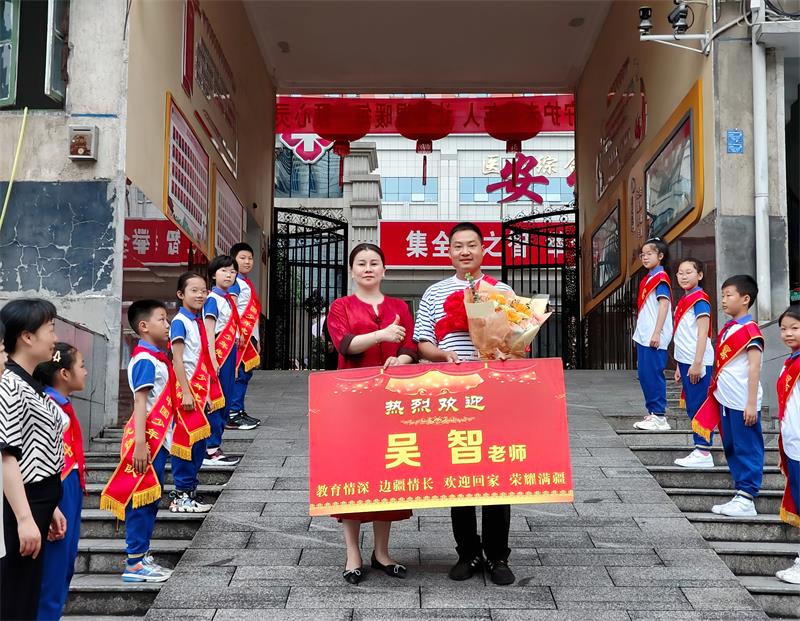 本网讯 “欢迎吴智老师回家,欢迎爸爸回家!”6月17日上午,329班学生吴童乐用稚嫩而又饱含深情的声音,向载誉而归的青年教师兼爸爸的吴智说出了自己的心声。阔别两年之久的援疆教师吴智重返校园,该校行政和十名优秀少先队员为他举行了简单而又热烈的欢迎仪式。 仪式上,该校校长陈秀丽为吴智戴上优秀东风教师绶带,并代表学校对他的辛勤付出和无私奉献表示衷心的感谢和高度的赞扬。优秀少先队员代表吴童乐为其送上鲜花和祝福,现场气氛温馨而感人。 2022年9月,吴智从资江河畔的安化黑茶小镇,前往六千里之外天山脚下的新疆生产建设兵团十二师二二一团学校参与教育援疆,用实际行动诠释教育初心。援疆期间,他获得新疆教师专题培训“优秀学员”“优秀教师”、年度考核“优秀等次”等诸多荣誉,并与当地学生建立了深厚的感情。 谈到今后的工作,吴智说:“回顾两年的援疆路,心中充满了感激与不舍,我要继续发扬‘艰苦奋斗,无私奉献’的兵团精神,将在援疆期间学到的宝贵经验和兵团精神带回家乡,与同事们分享,共同进步。要把大美新疆的人和事讲述给孩子们和身边的朋友听!”