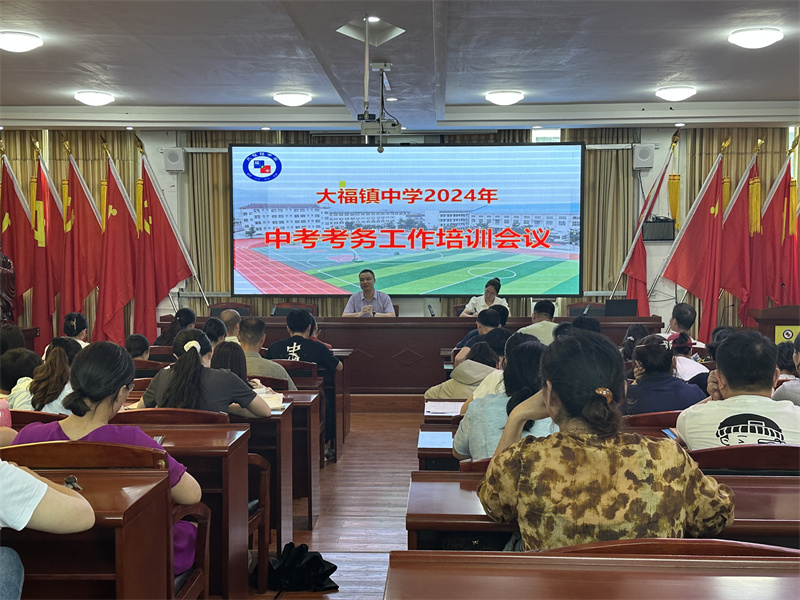 本网讯 6月16日,大福镇中学在多媒体室召开2024年中考考务工作培训会议,全体教师参加。