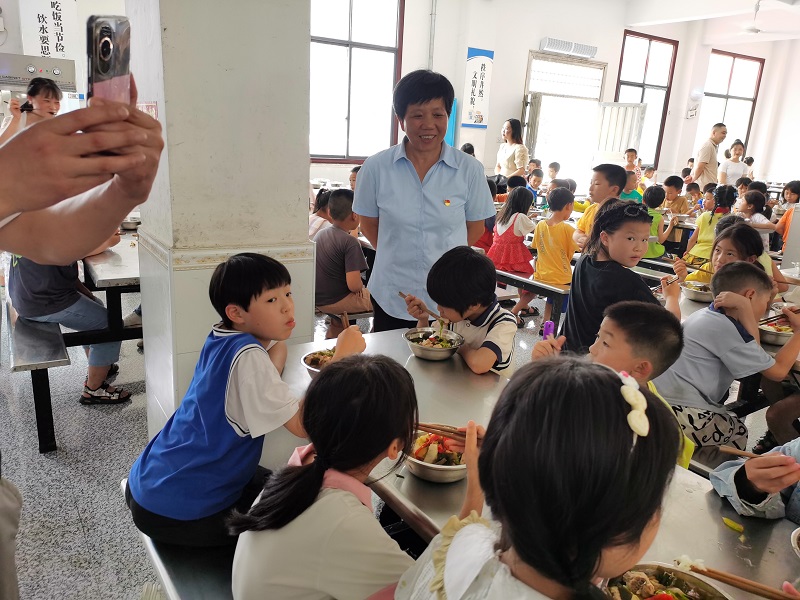 本网讯 6月13日,大福镇新桥完小开展食堂开放日活动。家长代表走进校园,参观"厨房重地",亲身感受学校以"明厨亮灶"守护孩子们舌尖上的安全。 该校总务主任带家长们观看了学校营养餐档案,并介绍了营养餐的各项管理制度。 随后,家长代表们近距离参观了食堂库房、操作间、加工间及洗消间等。对食堂的规范操作、物品使用、菜品操作、食品存放、菜品清洗、菜品留样等处理工序有了更直观的了解,真切感受到了学校膳食管理工作的科学性、规范性与安全性,所有操作流程可视、可查、可追、可溯,真正地实现"明厨亮灶"。 据悉,家长代表们对学校食堂管理工作给予了高度认可,对学校在食品安全、食堂卫生、学生食谱的定制等方面公开、细致的工作给予了肯定并提出了合理化的建议,纷纷表示要大力支持家校共建,为孩子们的健康平安保驾护航。 初审初校:罗奇勋