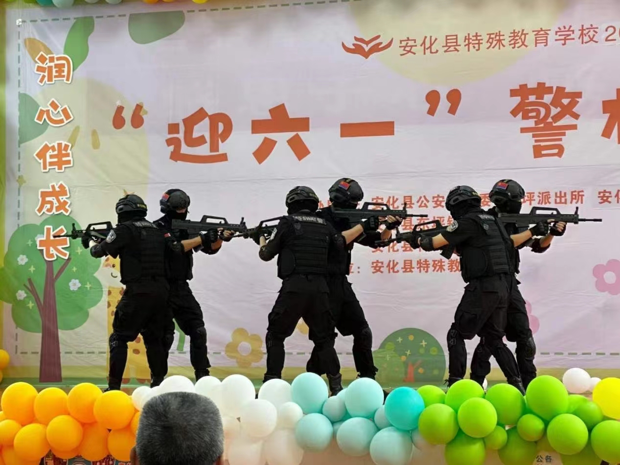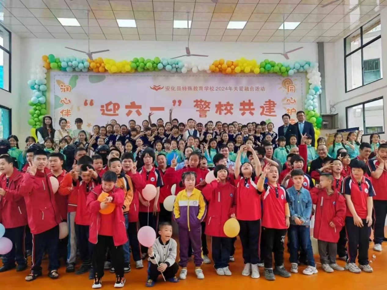 本网讯 5月30日上午,一场别开生面的“迎六一,警校共建”关爱融合教育活动在安化特校温馨举行。安化县公安局团委、东坪派出所、萸江学校、东坪完小及社会各界人士近200人参加了此次活动。 这次活动既是9年来警校共建的延续,旨在加强公安机关对学校的帮扶联系,为特殊群体构建一个案例、和谐、健康的成长环境。同时也是普特融合教育的深度推进。 上午九点,活动以特警队紧张刺激的擒拿格斗表演拉开序幕。特警队整齐划一的动作,应对突发事件的冷静与勇敢,给孩子们留下了深刻的印象,赢得得阵阵热烈掌声。随后特警队还带着安化特校的小朋友开始一场“童趣版”队列展示。 萸江学校的孩子们带来了精彩的舞蹈《渔梦渔阳》和动人的合唱《四季的问候》,歌声诚挚,舞姿优美,为活动增添了无限的魅力。安化特殊教育学校的孩子们也倾情演绎了他们最拿手的舞蹈——《祖国的花朵》。 最后公安局、东坪派出所、东坪完小、安化特校联手为大家带来了手语舞《光辉岁月》。 安化县特校自建校以来,与县公安系统等单位致力构建社会关爱体系,为特殊学生成长营造了良好的学习、生活环境;同时,积极与多所学校建立关系,为双方孩子搭建交流互动平台,取得了良好的育人效果。 |