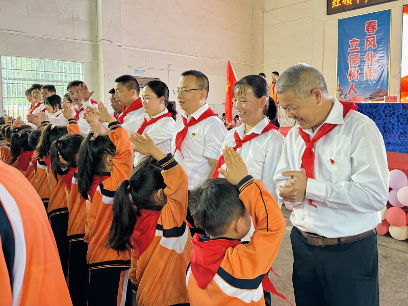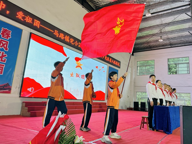 本网讯 5月30日,马路镇完小举行了“红领巾 爱祖国”新少先队员入队仪式,本次共有198名学生光荣地加入中国少年先锋队。 仪式伊始,激昂的出旗曲响起,少先队旗手们迈着坚定有力的步伐,高擎队旗走向舞台,他们的眼神中充满了对少先队的崇敬。 党员教师、入党积极分子、全体行政和老队员们双手捧着鲜艳的红领巾,庄重地走到新队员面前,为新队员们系上红领巾,每一个动作都饱含着对新队员的期望与祝福。新队员们则挺起胸膛,目光专注,脸上写满了对红领巾的渴望与珍惜。 新队员们在队旗下高高举起右拳,庄严宣誓,那稚嫩却充满力量的声音回荡在校园:“我热爱中国共产党,热爱祖国,热爱人民,好好学习,好好锻炼,准备着:为共产主义事业贡献力量!”这一刻,他们正式成为了光荣的少先队员。 马路镇中心学校副校长邓云彪满含深情地说:“亲爱的新队员们,今天你们成为了光荣的少先队员,这是你们人生中的重要时刻。少先队是一个光荣的组织,它承载着祖国的希望和未来。希望你们能时刻牢记少先队员的身份,以高标准严格要求自己,努力学习科学文化知识,培养良好的品德和行为习惯,积极参加各种实践活动,锻炼自己的能力。在星星火炬的照耀下,不断成长进步,成为有理想、有道德、有文化、有纪律的社会主义建设者和接班人。” 该校校长熊卫军表示,此次入队仪式,不仅是一次简单的仪式,更是一次深刻的教育。它为学校少先队组织注入了新鲜活力,也让新队员们在这个特殊的时刻,感受到了少先队的伟大与神圣,激发了他们内心深处的爱国情怀和对美好未来的憧憬。相信在星星火炬的照耀下,这些新队员们将茁壮成长,成为新时代的优秀少年,为祖国的未来贡献自己的力量。