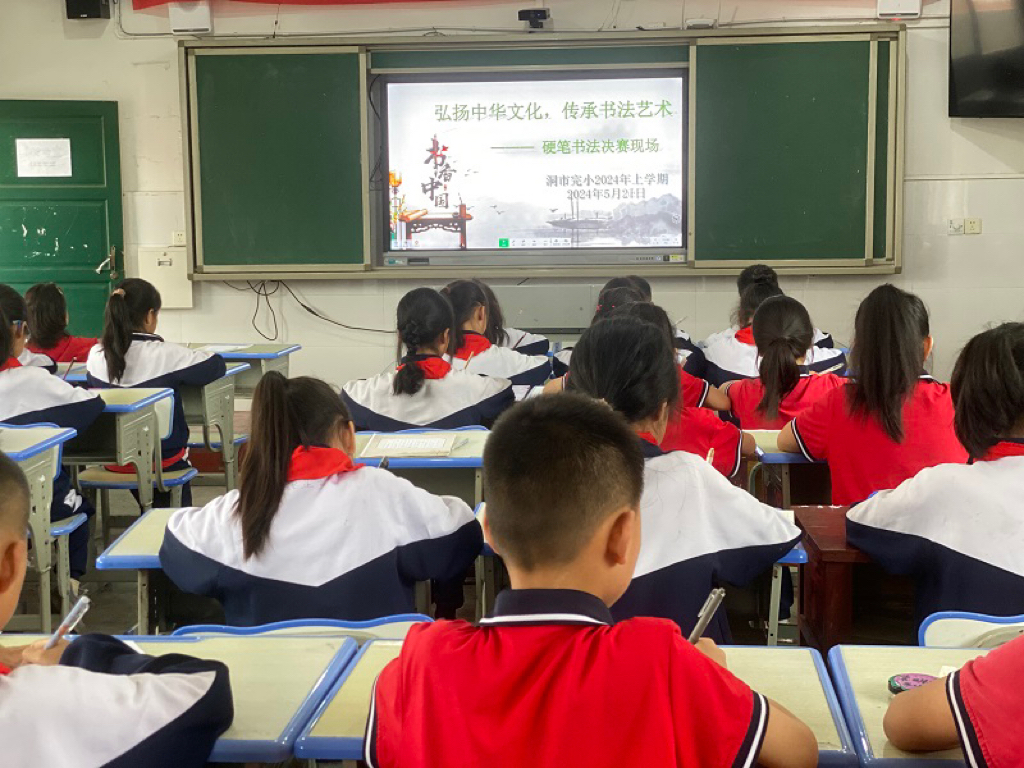 本网讯 5月21日,江南洞市完小教务处组织一至六年级开展以“弘扬中华文化,传承书法艺术”为主题的硬笔书法决赛。 比赛中,同学们神情专注,个个满怀激情,他们坐姿端正,握笔姿势正确,用心书写每一个笔画、每一个汉字。所有作品笔画流畅,横平竖直,或苍劲有力,或隽永飘逸,或清秀雅致,犹如一串串美好的音符跳跃纸上,充分彰显了我校学生深厚精湛的书法水平,整个校园洋溢着笔墨之香、文雅之风。 评委老师对照评分表从书写笔画、间架结构和卷面等方面进行了公平公正的评分,共评选出一等奖6名,二等奖12名,三等奖18名。 “本次硬笔书法比赛是对本学期学生硬笔书法练习成果的一次检验,学生的书写水平与审美能力均有了质的飞跃,在今后的教学工作中,我校将继续引导学生规范书写汉字,感受汉字之美,传承中华优秀传统文化。”该校校长姚志军如是说。(通讯员:李芬芳)