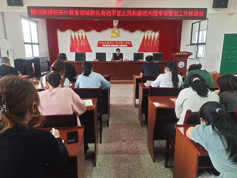 本网讯 5月20日,梅城镇望城完小召开群众身边不正之风和腐败问题集中整治工作推进会。 会上,校长李兴家先总结该校集中整治工作开展情况。传达了县局会议精神,并安排学校近期工作。 他强调,开展群众身边腐败和作风问题专项整治工作一是思想要高度重视,政治站位再提高;二是要突出重点,线索排查再深入;三是要紧盯案件,执纪问责再严明;四是以案促改,整治成效再提升。他希望全体教师高度重视,认识到整治工作的严峻性、重要性和形势的紧迫性。坚持问题导向,聚焦群众关心的重点与热点问题,全面自查自纠,以“小切口、大深入”分级分类整治突出问题,要举一反三、对症下药,推动点与面问题、个性与共性问题、新问题与老问题一体整改,确保各类问题见底清零。 学校将切实履行主体责任、监管责任,不折不扣落实好各项政策,推动从思想上正本清源、固本培元,主动担当作为,以实干实绩作为检验整治成效的标尺,切实把好事办实、实事办好,不断增强家长和学生的获得感、幸福感与安全感。