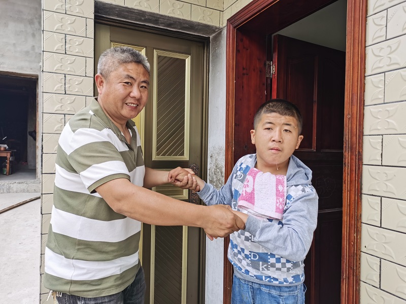 本网讯 5月17日,湖南坡完小校长邓阜和教务主任舒妍开展送教上门服务活动,为特殊学生小宇送去了一堂学习直立行走的课。 “小宇,慢慢站起来......你真棒!”“现在准备抬左脚,慢点儿,抬右脚.....嗯,不错......”邓阜扶着小宇,耐心地指导小宇训练站立、平衡,练习慢慢地行走。在这过程中,邓阜注重了行走技能训练指导,同时不断通过语言和动作鼓励小宇克服心理障碍,勇敢地迈出每一步。小宇从借力扶着老师学习迈步到自己慢慢地扶墙行走,一步一脚印,终于勇敢迈出了坚定的步伐,他的脸上露出了开心而自豪的笑容。 邓阜和舒妍还积极与家长沟通交流,制定下一步计划,为小宇的康复和成长共同努力。