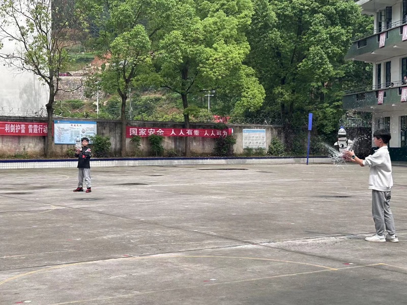 本网讯 5月13日,清塘铺镇回春完小在操场上开展自制水火箭发射展示活动。 安装发射台,装水加压,3、2、1,发射!两枚自制水火箭,载着两个少年的激情与期待,一飞冲天。“哇!成功了,飞得好高啊!“同学们的尖叫声响彻了校园。 据了解,该校六年级学生张俊龙、刘瑾,在一堂弘扬航天精神主题的思政课上种下了热爱科学的种子。他们通过上网学习水火箭的理论构造和发射原理,在科学老师的指导下,利用废旧饮料瓶、水、打气筒等物品自己动手制作了水火箭。 该校负责人表示,学校将以此次活动为契机,继续支持学生开展科学实验活动,为学生搭建更多接触科技、了解科技的平台。