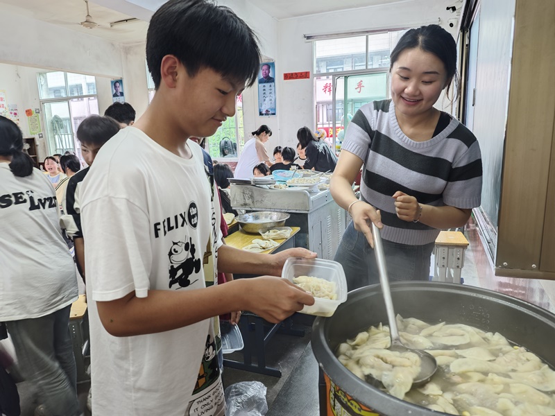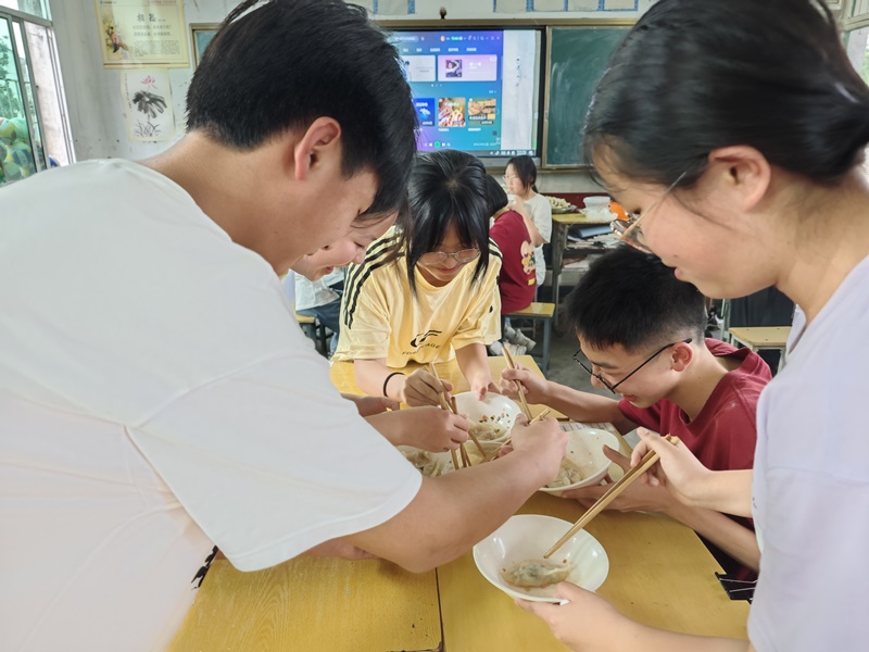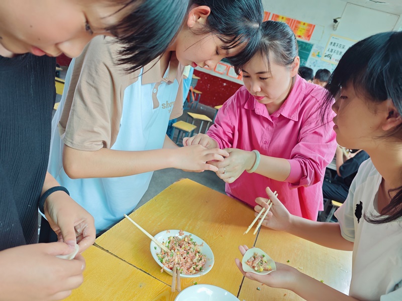 本网讯 5月7日,羊角塘镇中学成功举办了一场别开生面的师生共包饺子活动。 随着上课铃声落下,原本严肃安静的课堂瞬间变得热闹非凡,师生共包饺子活动正式开始。老师们和同学们围坐在提前准备好的肉馅和饺子皮前开始动手包饺子了,老师们耐心地向学生们传授包饺子的技巧,学生们也认真聆听,争相模仿。在大家的共同努力下,一个个形状各异的饺子逐渐成型,摆放得整整齐齐。 在包饺子的过程中,师生们相互交流、相互学习,气氛十分融洽。老师们关心学生们的包饺子进度,不时地给予指导和鼓励;学生们也积极向老师们请教,虚心接受建议。这种互动不仅增进了师生之间的情感交流,也让大家更加深入地了解了传统文化的内涵。 当热腾腾的饺子出锅时,整个教室都弥漫着诱人的香味。学生们围坐在一起,品尝着自己亲手制作的饺子,脸上洋溢着幸福的笑容。大家纷纷表示,这次活动不仅让他们学会了包饺子的技巧,更让他们感受到了传统文化的魅力和师生之间的深厚情谊。 据了解,此次活动是学校为了响应“双减”政策,将传统文化搬进课堂的一次创新尝试。学校希望通过这样的方式,让学生们在轻松愉快的氛围中学习传统文化知识,感受传统文化的魅力,同时减轻学生们的学业负担,让他们有更多的时间去体验生活、感受生活。