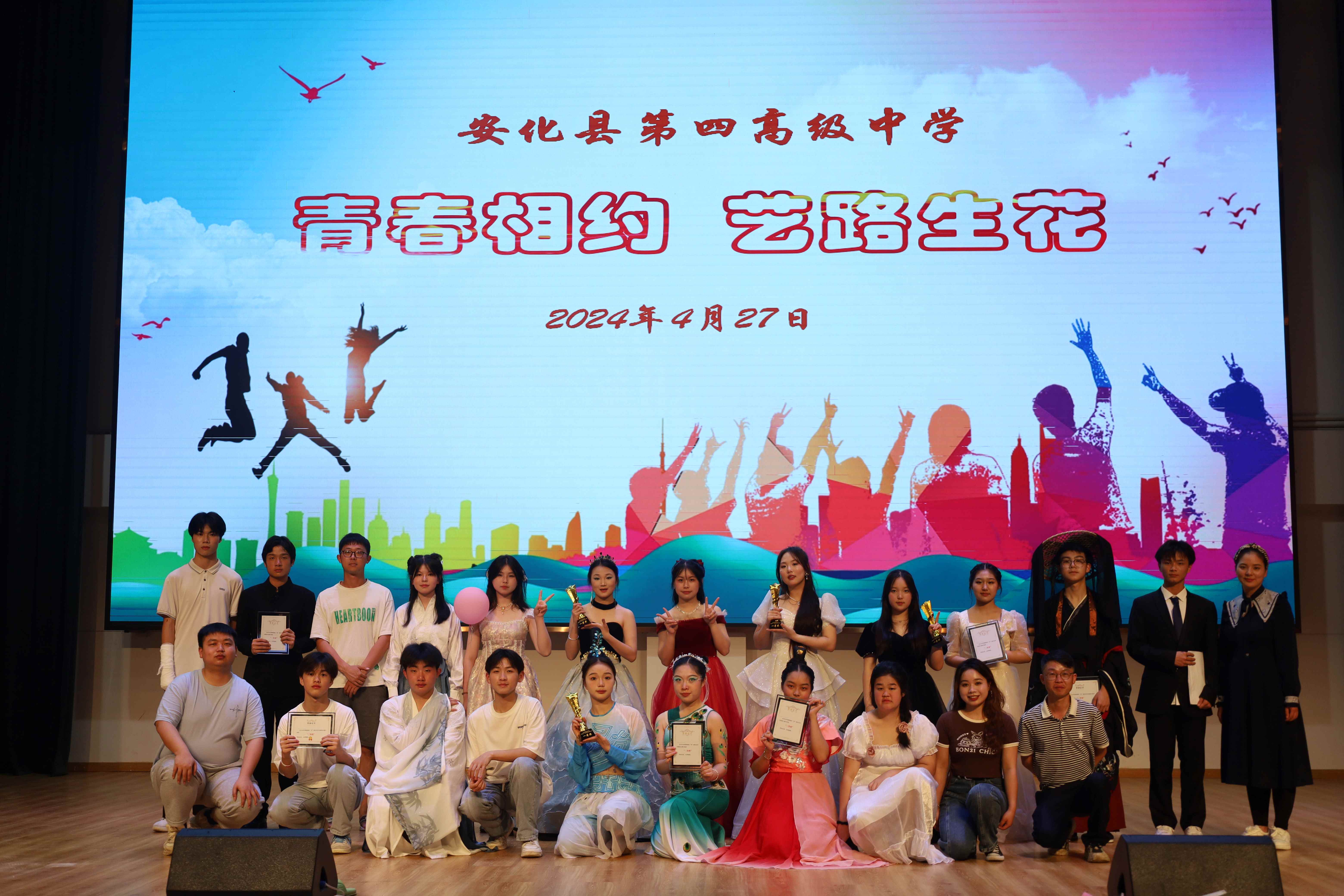 本网讯 4月27日,安化四中举行“青春相约,艺路生花”校园艺术节展演,高一高二全体师生参与,现场气氛热烈,充分展现出四中学生的青春风采和良好的精神面貌。 据悉,本次演出共呈现了20个节目,各选手用心筹备,精心装扮。舞台上他们歌声遏天空之行云,止清江之流波;他们舞姿轻盈,飞旋翩翩,他们笛声悠扬,澄澈空灵。他们展示出了四中学子的青春活力与艺术风采,在艺术道路上一路生花。 不论成绩如何,站在舞台上闪闪发光的每一个表演者,站在舞台后默默付出的每一个工作人员,站在观众席热情欢呼的每一个观众,都将在艺术之路一路生花,每个四中学子,都是青春的赢家。