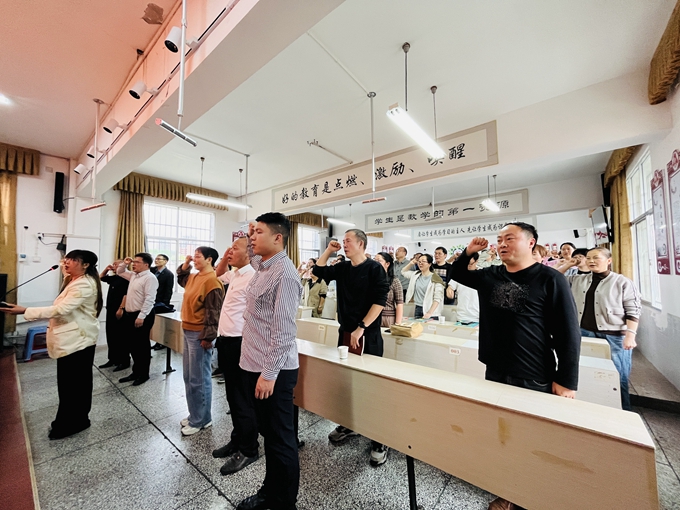 本网讯 4月25日第七八节课,东坪镇中学在科教楼大会议室召开了2024年中考教师动员大会。该校全体行政人员、毕业学科所有任课教师参会,中心校教育督学吴青云受邀出席。 教学副校长刘卫安作了题为《强化毕业班工作 打赢中考攻坚战》的中考动员讲话,总结了上一阶段的备考工作,明确了全县争二保三、全市前十五的中考奋斗目标,制定了行政包科包班、班主任强化管理、备课组精研新课标新考标、任课教师落实知识过关等具体工作措施。要求全体行政和毕业学科教师要为学生的生命、素养、精神赋能,并为全体毕业学科教师鼓劲加油。八九年级教师代表、班主任代表相继发言,汇报了中考冲刺阶段的工作措施,表达了搏击中考再创佳绩的决心和信心。八年级主任王琛、九年级主任夏伟文两大“军区司令”激情表态发言,点燃了会场老师们的豪情壮志。老师们纷纷表示:定会刻苦钻研,科学备考,同心筑梦,决胜中考! 学校党支部书记、校长刘巩元表示,学校将倾尽全力支持毕业班工作,希望全体毕业班老师守教育初心,育明日英才,时刻牢记育人使命,把各项工作落到实处,相信复习备考工作会卓有成效,东中学子定能谱写新的辉煌! 动员大会在全体教师庄严宣誓中结束。