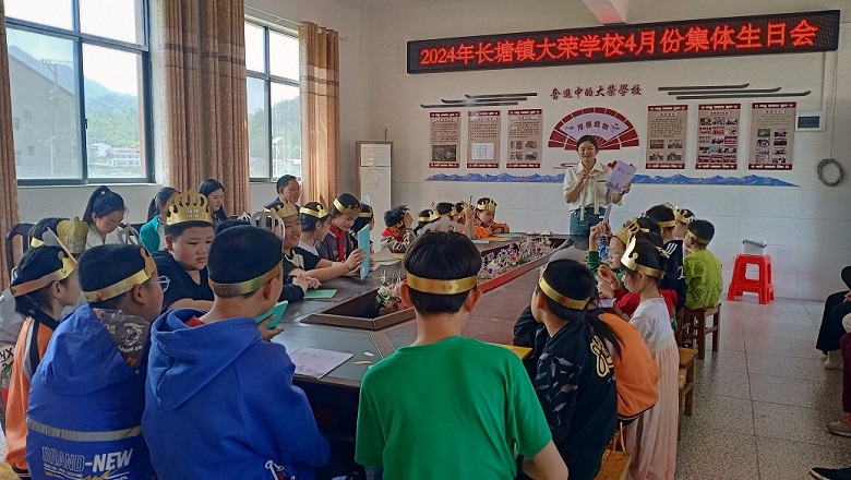 本网讯 近日,在长塘镇大荣学校教师陈岚的组织和福建同心慈善基金会的赞助下,举行了以“心系校园,情系留守儿童”为主题的4月份集体生日会。 生日会邀请了12名家长代表和长塘镇中心学校纪检室主任谭周为、大荣学校党支部书记刘益辉、校长刘娇参加,和29名留守儿童相聚在科教楼二楼会议室,共享孩子们的欢乐。 “校园是诗,校园是画。校园是一条历史长河,是香山红叶似火。这里是诗的海洋,是花的乐园。我们在这里耕耘,在这里收获。我们的校园是梦的天堂,我们爱我们的校园。”在两位小主持人的朗诵中,拉开了生日会的序幕。该校校长刘娇给孩子们送来了生日祝福,提出了“先学会做人,再学会做事”的期望,鼓励孩子们立志做对社会、对国家有用的人才!福建同心慈善基金会代表陈岚老师也为寿星送来礼物。生日会上,老师和家长们为小寿星戴上生日帽,谭周为和刘益辉为孩子们点燃生日蜡烛,全体齐唱生日歌,分享美味蛋糕,会场气氛愉快温馨。 最令人动容的是孩子们对家人说的心里话,一句“希望我的家人长命百岁”道出了孩子对家人的爱,道出了孩子对爱的渴望。(通讯员:陈岚)