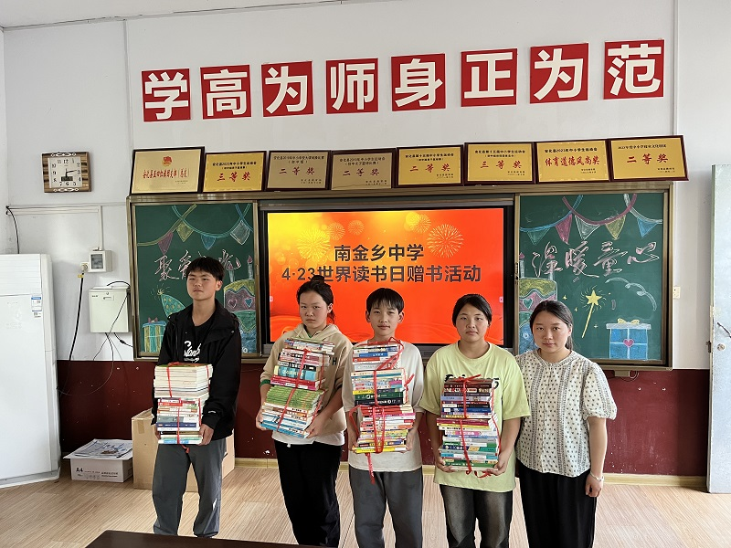 本网讯 4月23日,正值第29个世界读书日,南金乡中学举行赠书活动。 此次活动,是由益阳师专附属学校曹宽如老师自发组织,通过上周举行的校际交流活动,了解到南中近年来,随着农村进城务工人数增多,大多学生都为留守儿童,家长忙于农活无暇顾及孩子阅读,而且乡村学校的藏书量相对有限的现状。她回到学校后立马号召自己班上学生,将闲置的书籍捐赠予南中学子们,希望能拓展孩子们的阅读视野,丰富孩子们的精神世界,助力学生快乐成长。 该校教导主任周容亚勉励同学们常怀感恩之心,把握阅读机会,汲取知识营养,不断提升自己,为实现自己的梦想而努力奋斗。(通讯员:林志武)