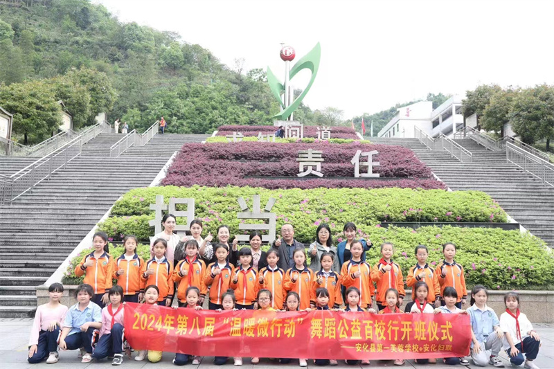 本网讯 4月17日,第八届“温暖微行动”舞蹈公益百校行开班仪式在安化县第一芙蓉学校举行。安化县妇联副主席康彩霞、湖南省舞蹈公益百校行安化区域负责人张程、第一芙蓉学校党支部书记、校长蒋军等参加开班仪式。 张程在开班仪式中讲到,“温暖微行动”舞蹈公益百校行是由湖南省妇联、湖南妇儿基金会等部门联合举办的一项公益活动。该项目通过艺术扶贫、文化扶智等精神层面的帮扶,开拓了农村学生的视野,促进了素质教育的提升。同时,她也希望通过此次公益项目的开展,能让更多爱心人士关注农村学生,让更多孩子享有平等的优质教育资源,为他们未来成长埋下艺术的种子。 据悉,“温暖微行动”舞蹈公益百校行项目已连续举办多年。旨在引导学生们全方位认识、接触、学习体育舞蹈,近距离感受艺术魅力,培养感知美、鉴赏美、创造美的能力,有效促进了农村学生素质教育的提高,引起了社会的一致好评。