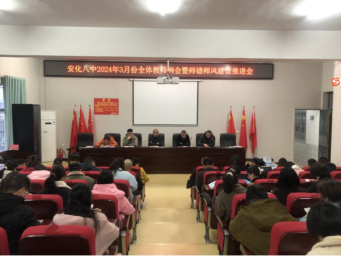 本网讯 3月18日,安化八中召开3月份教师例会暨师德师风建设推进会,全体教职工参与了会议。会议由该校常务副校长刘智勇主持。 会上,该校工会主席姚尚清组织全体教师学习了教育部等七部门《关于加强和改进新时代师德师风建设的意见》《中小学师德十条红线》《益阳市中小学办学行为若干规定》《全县教育系统“师德师风建设年”活动实施方案》等文件精神。他强调,全体教职工要认识到师德师风建设的重要性和必要性,要把师德师风建设摆在首要位置,常怀敬畏之心,尽职尽责守好课堂教学主阵地。 刘智勇对该校开学工作进行了简单总结,并对下一阶段校务工作进行了具体安排。他肯定了老师们开学以来的辛勤工作,也提出了开学阶段存在的问题。他结合最近的邯郸初中生杀人埋尸事件,强调了校园安全以及学生防欺凌教育的重要性。他认为,要重视学生的心理教育,关注学生,关爱学生,平等对待每一个学生。 该校校长宁爱军发表了以“塑造卓越师德,培育时代新风”为主题的讲话。他提出了该校个别教师在师德师风方面存在的问题,对他们的不良行为倾向作出了批评。他举一反三,开展了警示教育。他希望,老师们能规范从教行为,内强师德,外树形象,做志存高远之人、诚实守信之人、勇于负责之人、正直廉政之人、乐于奉献之人。他认为,师德师风建设不仅是教育事业的基石,更是每一位教师的灵魂和价值的体现,教师要做到有红线意识,底线意识,坚决做到学为人师,行为世范。他表示,该校会继续通过教师培训、校本培训等渠道,加大师德教育力度。 ![]() |