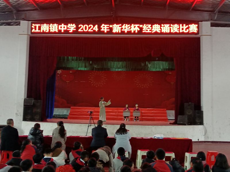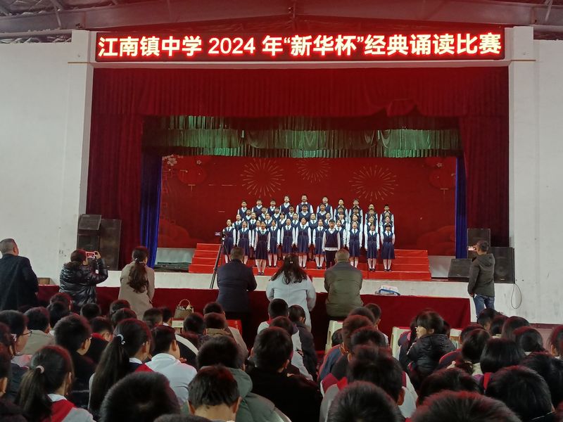本网讯 3月18日,江南镇中学开展“传承经典,筑梦未来”经典诵读比赛。 《祖国啊,我亲爱的祖国》,2105班同学浅吟低唱,表达出了对祖国深厚的热爱之情;《七律•长征》《沁园春•雪》,2204班全体同学用铿锵有力的声音,感悟伟人的豪迈气质和不屈精神;2303班的诗朗诵《黄河颂》,同学们饱含深情,礼赞母亲河。聆听《关雎》《蒹葭》,领略古老风雅;欣赏《万疆》《中国脊梁》,体会磅礴力量;感受《写给未来的你》《走向远方》,品味追梦的豪情。 整场比赛18个节目,紧扣主题,形式多样,借助音乐、美术、舞蹈等多种元素,精彩纷呈,赢得了掌声阵阵,喝彩声声。在经典诵读中寻找骨子里的风雅,在圣贤对话中,感悟文字里的魅力,为观众献上了一场视觉文化大餐。
