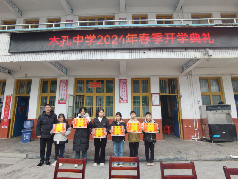 本网讯 3月12日,大福镇木孔中学举办2024年春季开学典礼。 教导主任黄明辉通报了2023年教育教学质量及改进方向。2023届中考取得了不错的成绩,其中英语科等科目在县内排名前列,执教的李佩佩、卢燕华老师荣获优秀学科教师称号,黄婵老师荣获优秀班主任。黄明辉也要求同学们以使命意识、竞争意识、行动意识来鞭策自己。政教主任戴乾明总结了上学期的德育活动主题,明确了德育的意义,并宣讲了“利剑护蕾,雷霆行动”的要求。其后,各年级优秀学生代表分享了各学科的学习方法,全体学生激情昂扬地齐声为新学期宣誓。 校长刘辉肯定了2023届中考的成绩,也提出了三点希望:强化目标导向、加强纪律观念、强化质量意识。