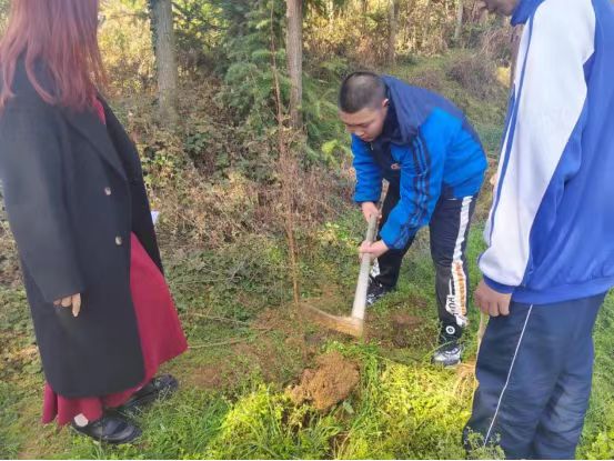 本网讯 3月12日,小淹镇中学党支部进行“相约春天,共植希望”义务植树活动暨三月份主题党日活动,小淹镇中学党支部全体党员、学校团员等共计62人参与活动。 上午9:25分,植树队伍迎着朝阳,提着水桶,扛起锄头,带上树苗,斗志昂扬地向植树地点出发。经过半个小时的跋涉,到达植树地点。学校党建专干易暄老师简单讲解植树方法和注意事项,植树活动正式开始。师生们热情高涨,分组合作,挖坑、扶苗、培土、浇水。只见他们手握锄头,先松泥土,挖好树坑,然后放入树苗,用泥土覆盖并踩实。两名同学则负责提水和浇水,一个一个干得热火朝天,已经植好树的同学还在树上系好代表自己祝福的红丝带。 在大家的欢声笑语中,21棵树苗便“亭亭玉立”在土地上,虽然大家脚底全是泥土,但眼前这一片新生的绿意让大家满心欢喜,纷纷合影留念。(通讯员:易暄、黄丹)