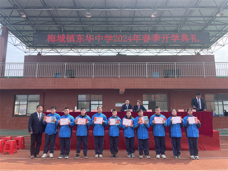 本网讯 3月8日上午10点38分,东华中学全体师生齐聚学校足球场,隆重举行以“龙年新目标,追梦新征程”为主题的春季开学典礼。 五星红旗,迎风飘扬,全体师生肃立敬礼,开学典礼在庄严的国歌声中拉开帷幕。 逐梦立新志,乘风谱辉煌。学校党支部书记、校长喻彦平首先发表了热情洋溢的开学致辞,他鼓励同学们在新学期中奋发向前,勇攀高峰:向着梦想出发,要目标坚定;向着梦想出发,要信心满怀;向着梦想出发,要脚踏实地;向着梦想出发,要砥砺前行。 志存高远,追求卓越。副校长眭向葵作教育教学发言。她和全体师生一起重温了学校三年发展规划目标,并指出:在全校师生的共同努力下,教育教学质量稳步提升,学生个人素养不断提高,艺体发展势头喜人,特别是去年县运会上足球比赛取得了可喜的成绩,并成功申请了国家足球特色学校。她认为:只有继续加强校园文化、班级文化、小组文化建设,继续推行“六环多元”模式的生本课堂,才能切实提高学校的教育教学质量,才能促进学生全面发展。 立德树人,安全护航。政教处主任陈勋对上学期德育与安全作了全面的总结并部署本期工作。他要求全体师生一定要始终把德育与安全放在第首位,要认真总结经验,同心同力,以更加扎实的工作作风推动学校德育与安全工作再上新台阶。 时光恰好,初春相见。“做一个内心有爱、懂得感恩的人”“做一个善于思考、努力勤奋的人”这分别是七八年级学生代表从自身出发,分享了他们心怀美好、志趣高雅,争做奋发有为的少年梦想,朴素而又催人奋进语言,激励着在场的每一位同学。 新学期,新征程。大会最后,团委书记郭琼芳对本期将举行的“校园之星”评比活动作了具体安排,教务处主任李静宣读了去年下期表彰名单,并为获得荣誉称号的集体和个人颁发奖状与奖金。荣誉见证了昨日的努力与辉煌,相信全体师生将以更加饱满的热情和坚定的信念迎接挑战,共同谱写东华中学的美好未来。