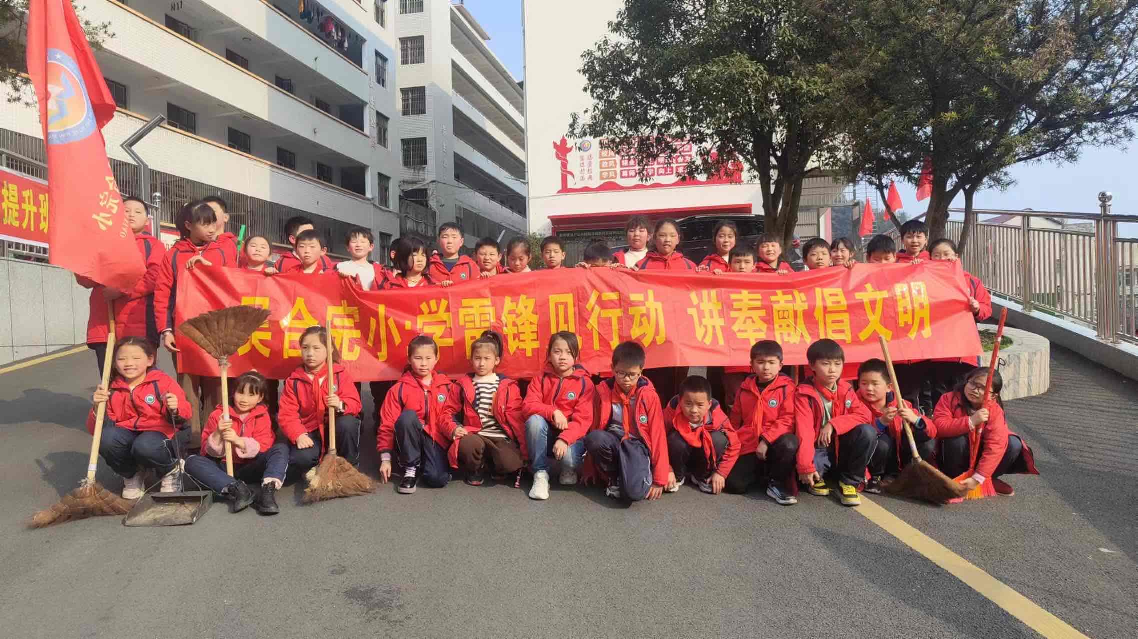 本网讯 3月7日下午,东坪镇吴合完小的少先队员化身小小志愿者,开展“弘扬雷锋精神 争做新时代好队员”学雷锋志愿服务活动。 活动伊始,少先队员们拿起簸箕、扫帚、帕子、小桶等清洁用具,在少先队辅导员陈娟娟的带领下,来到吴合社区内进行义务劳动。一个个忙碌的身影穿梭在街道打扫,弯腰拾起街道死角的垃圾。同学们用热火朝天的劳动绘制出吴合社区一道道亮丽的风景线,不仅美化了环境,更诠释了“奉献、友爱、互助、进步”的志愿服务精神。少先队员刘希潼说道:“用我自己的双手,使家乡变得更美了,我感到无比地自豪与快乐!” 该校校长林群丰,还号召队员们以“小手拉大手”的形式,把雷锋精神带回家,帮父母干力所能及的家务,和家人一起行动,保护环境,捡拾社区垃圾,践行雷锋精神。