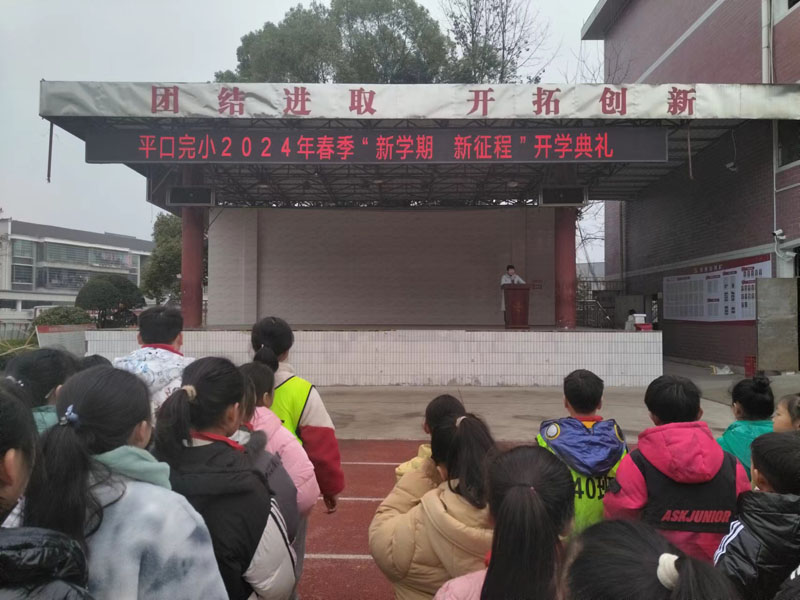 本网讯 3月1日,平口镇完小迎来了新学期开学典礼,开学典礼由高美霞老师主持,全体师生参加。 典礼在激昂的国歌声中拉开序幕,全体教师面向国旗庄严宣誓,争做人民满意的教师。六年级120班苏雨琪作为优秀学生代表发言,她号召同学们坚定目标、努力学习,从德智体美劳各方面提出切实可行的学习方法,积极向上有行动,争做新时代好少年。 校长张彩红为全校师生作新学期致辞,张彩红充分肯定了在过去的2023年里全校师生齐心协力、辛勤工作所取得的可喜成绩,并送上了新学期的祝福,同时提出:在新学期里,全体师生当以饱满的热情迎接新学期的挑战。她期望每一位同学都能成为学习的主人,积极主动寻求知识;争做文明的使者,传递文明的力量;勇当安全标兵,珍爱生命,关注安全。 安全副校长夏志平对本学期安全工作作重要讲话,就校园安全、交通安全、食品安全等方面进行讲解,提高学生安全法治意识。随后,教务主任夏志娴宣读了上学期获奖的先进教师和学生,对取得成绩的老师和同学给予了高度的赞扬,并号召全体师生向他们学习,争取取得更大的进步。 此次开学典礼圆满结束,同学们纷纷表示在新的一学年里将以龙的精神为榜样,勇往直前迎接挑战,不断超越自我,为平口完小谱写新篇章。