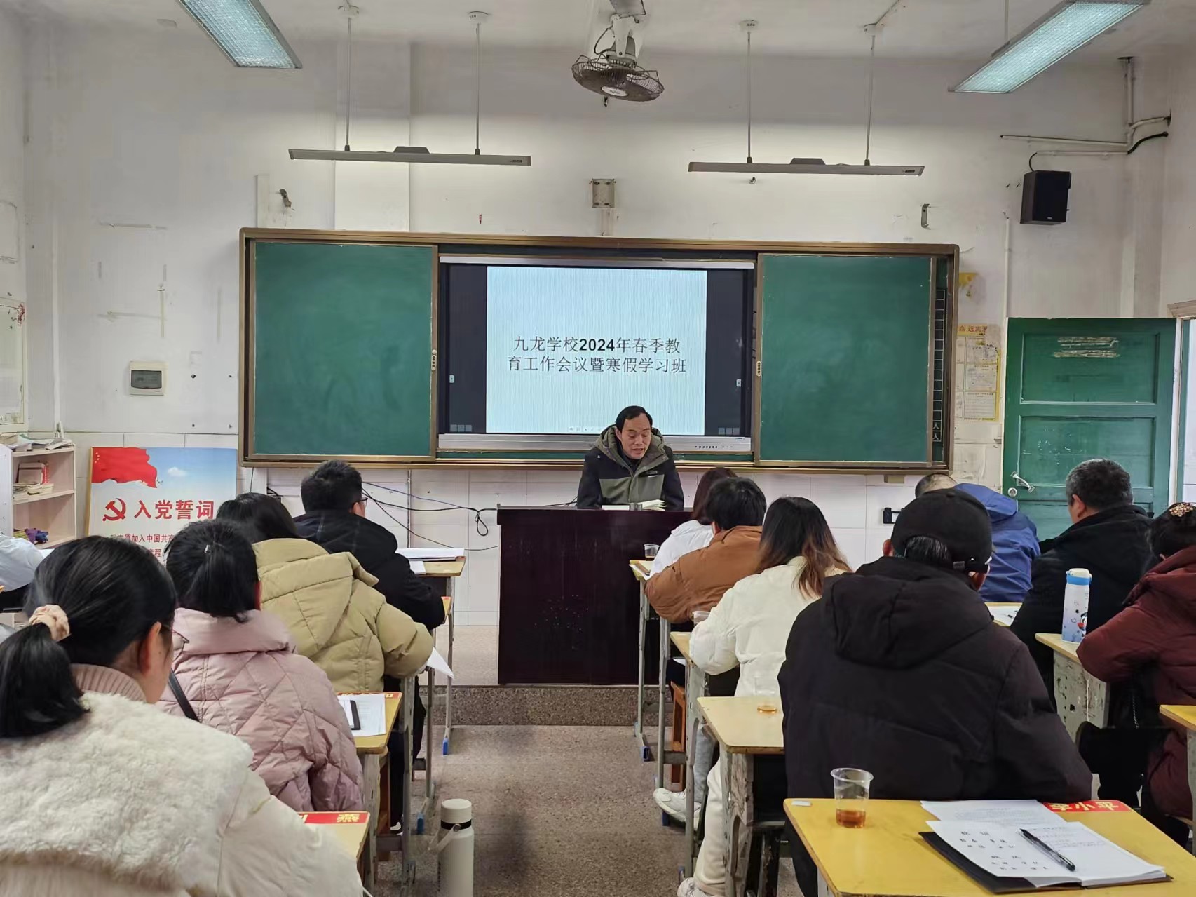 本网讯 2月28日,仙溪镇九龙学校召开2024年度春季教育工作会议暨教师寒假业务学习班。全体教师参加此次会议,办公室主任阮轲琼主持。 会上,校长李琴向全体教师致以美好的新春祝福,向全体教师宣誓,强化了教师献身教育的思想意识,增强了教师的职业幸福感、荣誉感。并带领全体教师学习了学习贯彻习近平新时代中国特色社会主义思想主题教育总结会议精神,表示新学期学校将加强教师队伍建设,鼓励教师们积极参与各类培训和学习,提高自身的专业素质和能力。副校长方军吾以题为“坚守师德师风底线,做好本职工作”的讲话,要求全体教师加强师德师风建设,树立良好的教师队伍形象。 新的一年,九龙学校立足长远、理清思路,坚持“五育并举”,加强精致管理,夯实特色办学,一起向着 “高质量、有特色、现代化”的目标,努力创建优质示范学校。