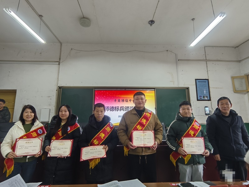 本网讯 2月28日,羊角塘镇中学对6位师德标兵进行表彰。 据悉,该校为进一步弘扬崇高的师德风范,加强教师队伍建设,引导全体教师树立以德立身、以德立学、以德施教的理念,从2021年开始,坚持每学期开展“师德标兵”评选活动,该活动更好地激发了老师们对教育事业的热情与责任感,老师们的精神面貌焕发出了新的光彩:中年教师干劲十足,青年教师成长迅速,形成了积极向上的教育氛围。 该校党支部书记、校长王日行提出,全体教师要以“师德标兵”为榜样,查找不足,持续改进,人人争做标兵,用“师德标兵”之光照亮教育前行之路,照亮千千万万学生求学之道。