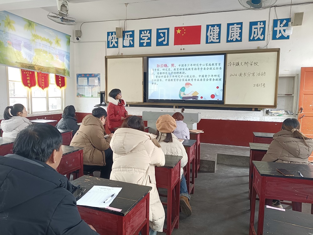 本网讯 2月27日,冷市镇大桥学组织全体教师开展“共沐书香 分享悦读”读书分享活动。