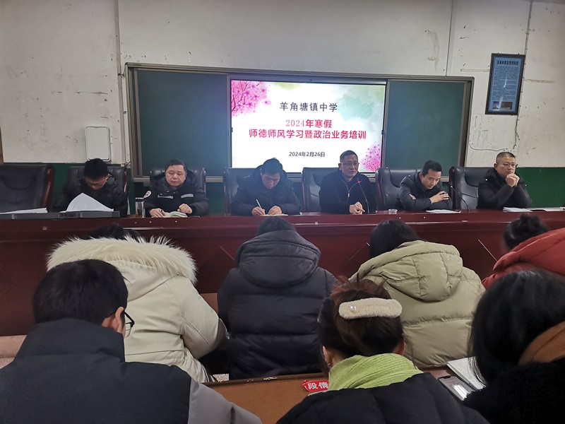 本网讯 2月26日,羊角塘镇中学为期三天的师德师风学习暨政治业务培训正式拉开帷幕。 会上,党支部书记王日行在发言中明确了新学期的努力方向:尽职尽责,旗帜鲜明树师德正师风;群策群力,真抓实干抓教学提质量;打造一个率先垂范、甘于奉献的管理团队;打造一个乐学善教、爱岗敬业的教师团队。 据悉,该校本次学习活动采取上午集中学习与下午分组学习研讨相结合的方式。集中学习中,老师们学习了《关于加强和改进新时代师德师风建设的意见》《全市教育系统深入开展“树师德•提师能•铸师魂”师德师风建设活动实施方案》《中华人民共和国未成年人保护法》《侵害未成年人强制报告制度》等文件精神,全体教师共同签订了《教师廉洁从教承诺书》《师德师风建设责任书》。 此次学习活动得到了全体教师的热烈响应和积极参与。他们纷纷表示,将珍惜机会,用心学习、深入思考、积极实践,紧紧围绕学校目标,践师德守正初心,正师风砥砺前行,为羊角教育献策献力。