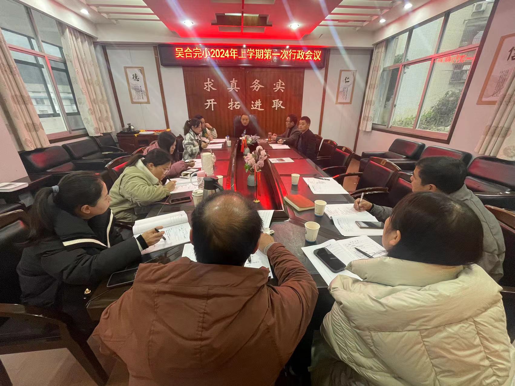 本网讯 2月19日,东坪镇吴合完小全体行政齐聚会议室,召开2024年上学期第一次行政会议。 会议伊始,校长林群丰对2023年工作进行细致总结,就2024年工作详细部署。提出新学期工作方向要以县教育局提出的三个重点工作为思想:狠抓质量不动摇、守牢安全底线、严抓师德师风。随后,他紧扣学校工作实际情况,从四个抓实畅谈思路,明确方向:抓实教育教学常规和校本研训,促进教师教学水平;抓实学生德育工作和养成教育;抓实教育教学质量,提高课堂教学效率;抓实书香校园建设和课后服务。 本次行政会议拉开了2024年春季新学期的序幕,为全体行政对新学期工作提高认识、指明方向,为新学期学校管理、师生发展等各项工作的顺利开展储蓄动力。新的一年,吴合完小将倾情打造“热辣滚烫”的龙年开局!