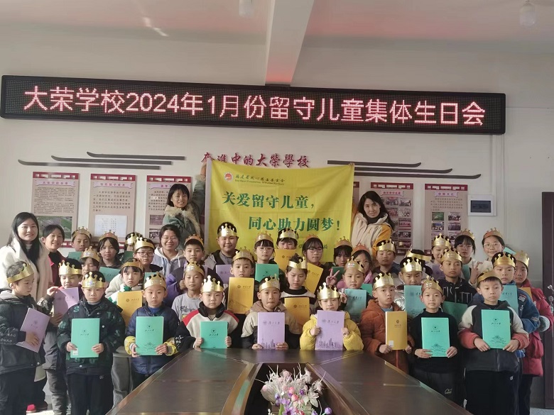本网讯 1月10日,在长塘镇大荣学校教师陈岚的组织和福建同心慈善基金会的赞助下,迎来了2024年第一个留守儿童集体生日会。 活动上,该校校长刘娇和寿星教师为37个小寿星戴上生日帽。“我祝愿父母身体健康,有祝愿老师开心快乐,有希望自己期末考试成绩优异”“我希望爸爸妈妈可以早点回来陪我”齐唱生日歌后,孩子们许下了自己的生日愿望,该校校长刘娇也送上了生日祝福,望孩子们好好学习,学会感恩,将这份爱心传递下去。 刘骄表示,通过此次活动,让那些父母不能回家的孩子,在盼望父母回来的同时,感受到学校和社会给予的爱。非常感谢福建同心慈善基金会对该校留守儿童的关注和爱护,让孩子们在学校和社会各界人士的关爱下,茁壮成长。情暖寒冬,留守不孤独!