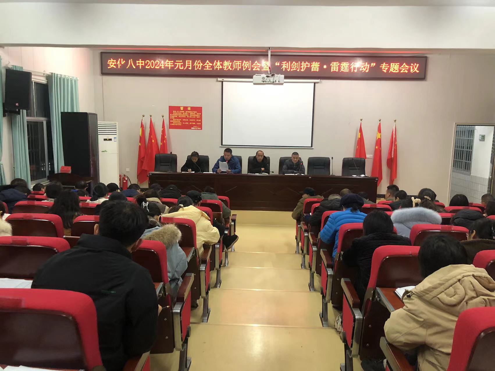 本网讯 1月8日,安化八中召开2024年元月份全体教师例会暨“利剑护蕾·雷霆行动”专题会议,全体教职工参会。 会上,该校德育副校长李琴带领全体教职工学习了《未成年人保护法》、《未成年人保护条例》、《益阳市教育局预防学生性侵害“十严格·十不准”》、《安化县教育系统“利剑护蕾·雷霆行动”实施方案》。他指出,未成年人保护工作是学校工作的底线,全体教职工一定要统一思想,提高政治站位,重视未成年人保护工作。他要求全体教职工,明确自己职责,坚守岗位,将“利剑护蕾·雷霆行动”推向深处,为未成年人健康成长打造一个安全、和谐、阳光的成长环境。同时对学校德育工作与学生管理工作做了安排。 该校教导处主任姚星星对元月份学校教务工作做了简单安排。临近期末,她对该校复习工作与寒假学习工作进行了简单部署。她强调,全体教师应抓紧时间,按照教学计划进行期末复习安排。随后,她还要求各位老师紧紧围绕学校工作目标和要求,充分发挥教研组的凝聚力和集体智慧,扎实高效地组织开展好寒假学生活动,让学生过一个既充实、有特色有意义的寒假。 该校校长宁爱军发表了总结性讲话。他要求全体教职工要强化担当意识,夯实复习备考工作;要加强团队合作意识,提高教育教学质量;要强化学校安全意识,在教书育人的同时,确保校园安全,筑牢安全防线。 ![]() |
