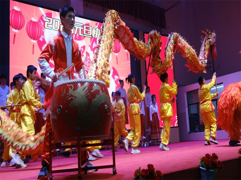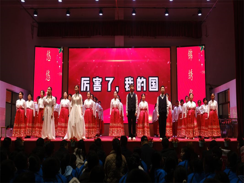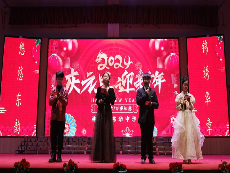 本网讯 12月28日晚,梅城镇东华中学在学校礼堂成功举办了以“悠悠东韵,锦绣华章”为主题的2024年元旦文艺汇演,师生及家长们共同见证了这场文化与艺术的盛宴。 此次汇演得到了学校领导的高度重视和大力支持,全校师生积极参与,精心准备。整个汇演分为舞蹈、歌曲、小品等多个环节,形式多样,内容丰富。 活动在党支部书记、校长喻彦平的热情洋溢的致辞中拉开帷幕。校长在讲话中回顾了过去一年的成就,并对未来一年给予厚望。接着,242班同学带来歌舞《祥龙启新》,让整个学校都沉浸在欢乐喜庆的氛围中;238班表演的诗歌朗诵《五星出东方》展现了他们对祖国的深情热爱;233班表演的小品《推销》则让人忍俊不禁;235班师生共同表演的合唱《是爸妈,是孩子》让人倍受感动;全体教师表演的朗诵《有一种美好,叫做教师》更是将现场气氛推向高潮。台上舞姿优美、歌声嘹亮,台下喝彩阵阵、掌声四起。整台节目气氛浓郁、引人入胜、高潮迭起,全校师生及家长们沉醉在欢乐的海洋中。 最后,本次元旦文艺汇演在欢乐和谐的气氛中落下帷幕。全校师生在欢声笑语中迎接新的一年,共同期待东华中学美好的未来!