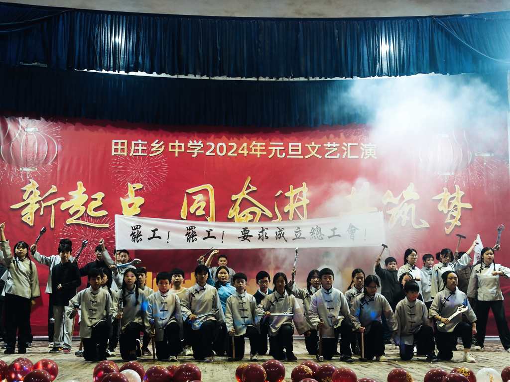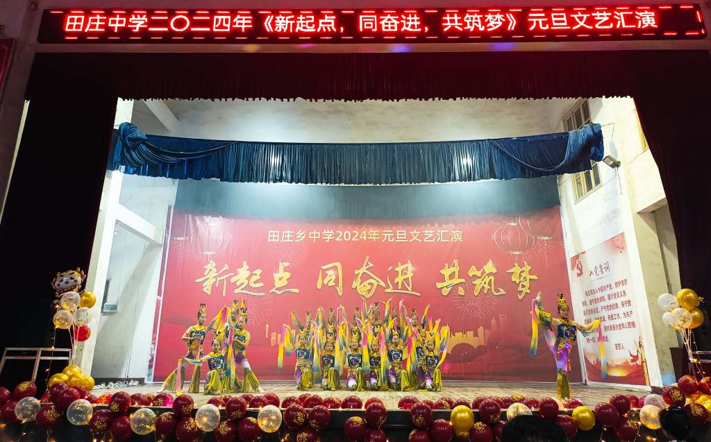 本网讯 12月28日晚,田庄乡中学举行2024年“新起点,同奋进,共筑梦”元旦文艺汇演。 校长蒋劲在开幕仪式上致辞,向全体师生送上新年祝福,展望新年愿景。文艺汇演以舞蹈二班的舞蹈《美人吟》拉开帷幕,整场演出精彩纷呈。小品《上课上课请听话》幽默搞笑,贴近生活;舞台剧《二七大罢工》革命气息浓厚,气势恢宏;舞蹈《负重1万斤》以舞蹈的形式演绎了校园霸凌,立意新奇,引人深思;各年级组教师表演的节目激情四射、活力满满,把气氛推向高潮。 老师们纷纷表示,本次元旦文艺汇演充分展现了我校师生团结协作、多才多艺、奋发向上的良好风貌,体现了五育并举,活动育人的教育理念。