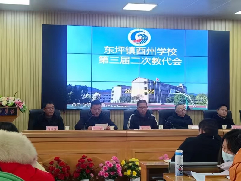 本网讯 12月22日,东坪镇酉州学校第三届二次教职工代表大会在多媒体报告厅顺利举行。东坪镇中心校工会主席谌铁明,该校党支部书记、校长王飞,德育副校长刘海峰和教务副校长姚喜临等领导以及22名正式教职工代表齐聚一堂,共商学校发展大计。校工会主席王滔主持大会。 大会在庄严的国歌声中拉开序幕,该校办公室主任周荣亮为大会致开幕词。王飞向大会作了学校工作报告,报告全面总结学校的办学理念、办学条件、办学特色和办学成果,指出了发展中存在的问题,明确了未来发展战略目标和建设思路。随后,工会主席王滔、总务主任谭海涛分别作《学校工会工作报告》《学校财务工作报告》,指出在上级工会的正确指导下,在学校党支部、行政的直接领导下,在全体教职工的大力支持下,学校工会积极配合学校,围绕学校中心工作,服务大局,认真履行工会职能,积极推进学校民主管理,推进校务公开,为我校教育教学质量的大幅提升做出了应有贡献。 谌铁明充分肯定了我校的办学成就,高度评价了代表们心系学校、心系教师的责任感,希望学校工会能从制度上为广大教职工创造一个公平的环境,让教职工的个人价值得以体现,不断提高教职工的工作积极性。 在民主和谐的氛围中,代表们畅所欲言,为完善学校规章制度献言献策,认真细致地投票表决各项方案,并将结果汇总提交至大会主席团,王飞代表大会主席团对教师提案进行答复。