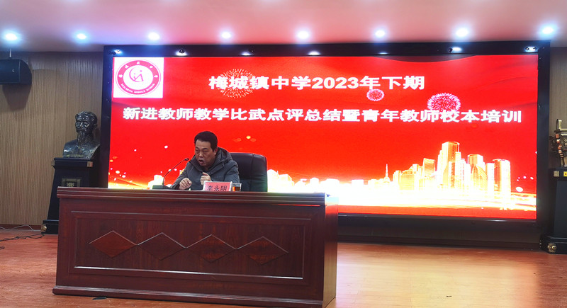 本网讯 12月21日,梅城镇中学2023年下期“新进教师教学比武点评总结暨青年教师校本培训活动”在多功能报告厅举行。学校行政、本学期新调入教师、30岁以下的青年教师、实习教师参加活动。本次活动由教导主任蒋三佰主持。 教科室主任高少华进行板书设计培训,就板书设计的基本原则、布局、文字规范等方面进行了详细的讲解。她指出,板书能够呈现完整逻辑结构和知识体系,将抽象问题形象化,思考过程直观化,与教学课件相互配合,更利于学生记录、理解和掌握。 教学质量督导组罗鹏飞、李永明对参赛的18堂课进行细致点评,充分肯定了老师们扎实的教学功底、勤恳钻研的教学作风、灵动的教学风格,针对课堂上一些不足之处也结合具体的教学环节对症开良方,以确保“精准课堂”的进一步落实。 副校长戴彪宣读了此次教学比武的结果, 并从运用“六环多元”教学模式、加强磨课、相互听课三个方面,希望全体新进教师和青年教师做一个肯钻研、有品位、青春快乐、善于反思和积累的老师,研而有值,教之所乐,教之所获。 校长喻选民从不忘初心,珍惜这份工作;要摆正位置,勇挑重担;精准定位,接过名师接力棒;发挥自己的特长与潜能;好好修炼自己各项教育基本功等五个方面希望青年教师增进职业领悟,规范职业行为,树立立德树人理念,研习教育教学理论,在学思践悟中扣好职业生涯的“第一粒扣子”,争做“四有”好老师。 会上,全体参会人员还观摩了该校2023年全县课堂教学比赛特等奖获得者刘纯钰、谭瑶的教学视频。