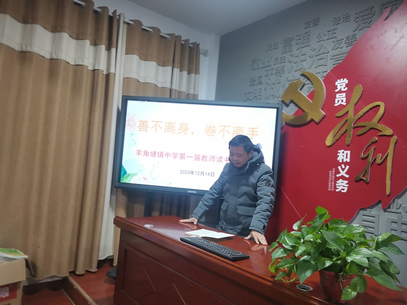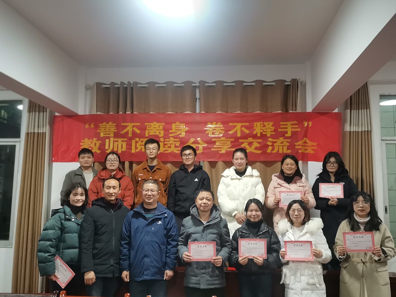 本网讯 12月14日,羊角塘镇中学组织教师们举行以“善不离身,手不释卷”为主题的教师阅读分享交流会。 分享会上,气氛热烈而融洽。22位老师分别结合自身的读书实践,从不同角度畅谈自己的读书收获、感悟。他们或娓娓道来,引人深思;或慷慨激昂,催人奋进;或以书为镜,照见自我……羊角塘镇中心学校工会主席贺志田参与了本次阅读分享活动,对教师们的阅读分享发言给予了充分肯定和高度评价,并建议所有教师都应该以读书为契机,立足岗位,不断提升自我,特别是党员教师,要积极发挥先锋模范作用。在座的老师们备受鼓舞,深感振奋,纷纷表示将以书为伴,真正把读书学习当成一种生活态度、一种工作责任、一种精神追求。 该校校长杨建伟在活动中分享到:手捧书籍就是手捧希望,阅读虽然不能改变人生的长度,但可以增加人生的厚度。对于教师而言,读书不仅是精神生活的重要内容,更是专业发展的一条捷径。学校将以本次分享交流会为开端,以点带面,以师带生,继续开展一系列丰富多彩的阅读活动,营造浓郁的师生阅读氛围,共同探寻阅读的美好。 贺志田与该校责任督学方立安为参与分享的教师们颁发了证书,大家合影留念,给本次活动画上了圆满的句号。