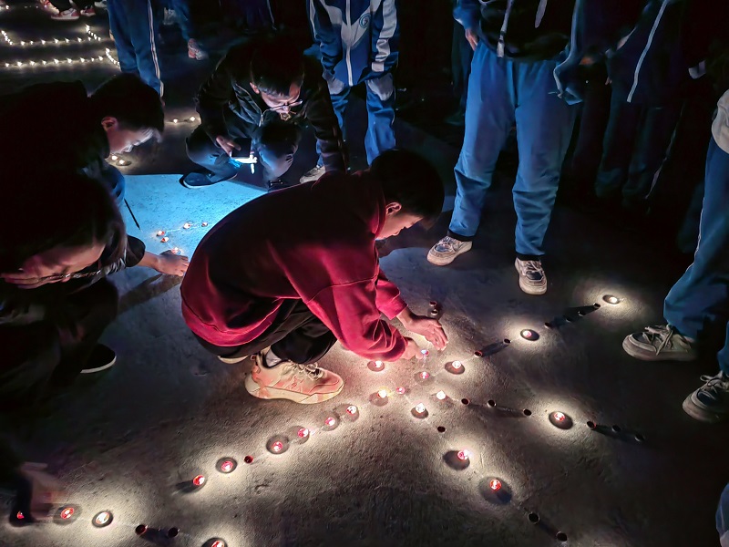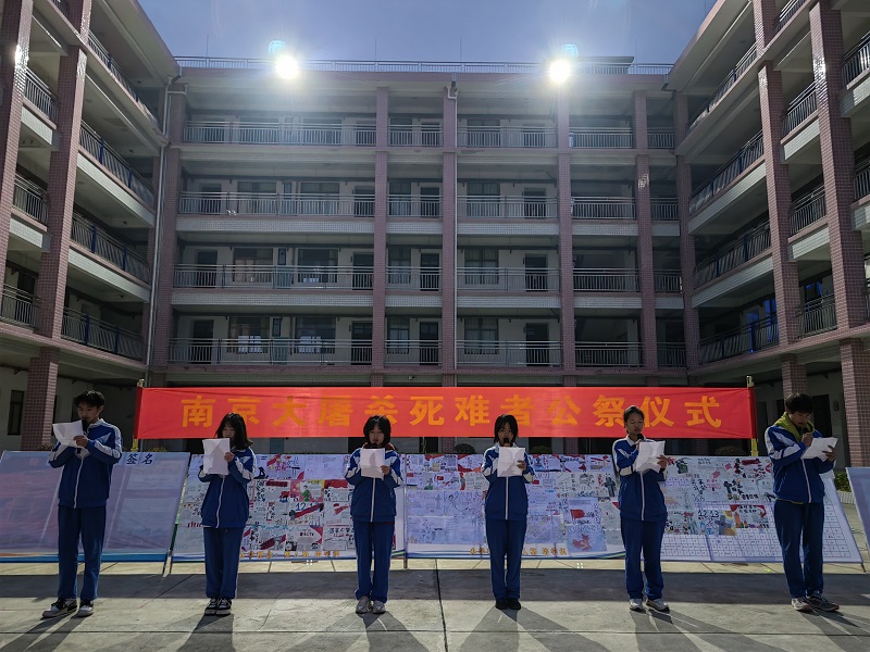 本网讯 12月13日,烟溪镇中学全体师生聚在红旗下,用“追思历史,祈愿和平”烛光祭的方式,举行国家公祭日主题教育,悼念在南京大屠杀中死难的同胞和为国牺牲的革命英烈。 清晨的黑夜中,除了沉默,只有跳动着的烛光熊熊燃烧,照亮了四周的黑暗寂静。现场庄严肃穆,同学们围绕着用蜡烛摆放的“和平12.13”字样前低头静默肃立,共同为遇难同胞祈愿。 教师代表刘雨嫣讲述南京大屠杀死难者国家公祭日的由来及意义,共同缅怀南京大屠杀的无辜死难者和为民族解放事业献出宝贵生命的革命先烈。学生代表刘家幸、夏子琴朗诵《和平宣言》表达对南京大屠杀遇难同胞的哀思和永续和平的心愿。尹新奥、夏尹晗、尹航、方秀凤、胡君柔、刘畅六位团员学生深情朗诵了《南京!我的南京!》,深切缅怀南京大屠杀中惨遭日本侵略者杀戮的死难同胞们,缅怀为中国人民抗日战争胜利献出生命的革命先烈和民族英雄。 活动结束后,同学们纷纷在签名墙上写下寄语,寄托哀思。“我想,烈士们一定听得我们的诉说与想念吧!”有学生说道。