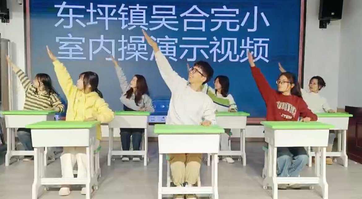本网讯 12月12日,东坪镇吴合完小组织开展2023年中小学室内课间操推广活动。 活动伊始,该校7位青年教师展示了主题为《奔跑少年》的室内操,老师们热情饱满的精神状态、娴熟整齐的动作与跳动的音符完美结合,展现出该校青年教师奋发向上的精神面貌。 “动感的旋律、律动的节拍”。室内课间操“解锁”校园体育锻炼新形式,同学们跟着视频唤醒自己的运动细胞。伴随着欢快激扬的青春乐曲,他们动作整齐划一,脸上洋溢着微笑,释放着活力,把室内课间操的美展现得淋漓尽致,极大地丰富了校园文化内涵。 校长林群丰表示,一直以来,学校致力于阳光体育活动课程建设,将持续探索室内大课间活动的模式,把德育、智育、美育、心理教育等因素融合其中,有效推进“双减”,落实“五项管理”。
