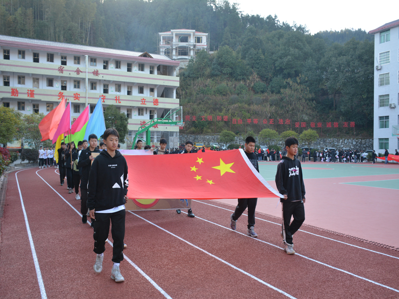 本网讯 12月7日,大福镇东山中学冬季运动会在田径场开幕,全体师生欢聚一堂,共同参与了这场精彩的体育盛会。 上午8点,《运动员进行曲》奏响,首先入场的是国旗队、会徽队、彩旗队,队员们踏着整齐的步伐,英姿飒爽,彩旗飘扬。接着,班级方阵依次出场,口号嘹亮,脚步铿锵。学子们个个昂首挺胸,意气风发,以饱满的精神接受校领导的检阅。部分班级还向大家展示了社团活动成果,创编了各具特色的入场表演。 该校长高庆华致开幕词,希望全体运动员能秉承更高、更快、更强的奥林匹克精神,以高昂的斗志和顽强拼搏的精神参赛,严守比赛纪律,遵守比赛规则,尊重裁判裁定,同时注意比赛过程安全,积极参赛,赛出风格、赛出成绩。接下来,裁判员代表和运动员代表分别进行了宣誓。 据悉,此次运动会为期一天半,比赛设置了篮球、羽毛球、乒乓球、男女迎面接力、教师保龄球等团体项目。